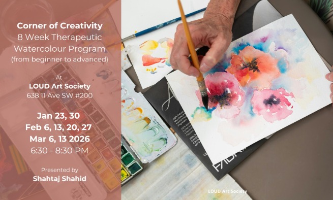 Corner of Creativity Watercolour program is a 8-week therapeutic watercolour painting program, from beginning to advanced, designed by LOUD Art Society to support mental wellness, emotional regulation, and personal growth through creative expression.